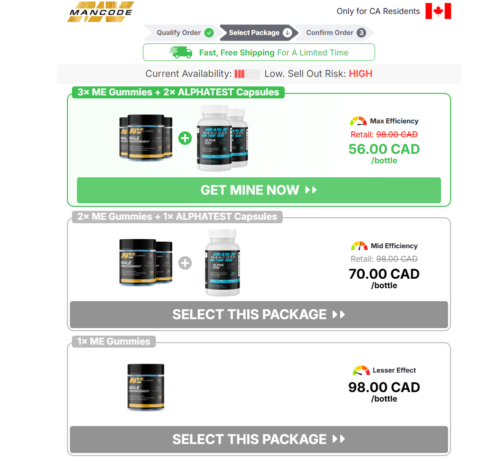 MANCODE Gummies are listed at $ 56.00 for Canada, with 42% shown as the discount percentage and $ 210.00 shown as the discount value. Shipping is marked as free for Canada, and the offer includes a 30 day guarantee. If you are comparing options, focus on these confirmed items first, then verify the final totals and policy text during checkout on the official pages.